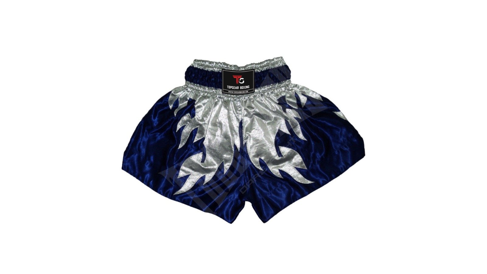 Muay Thai Short made of 100% polyester satin. 4″ elastic and draw string waistband with patch work