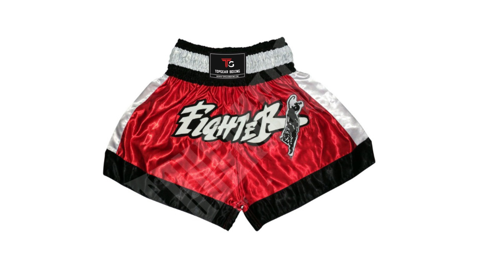 Muay Thai Boxing Short made of 100% polyester satin. 4″ elastic and draw string waistband with patch work.