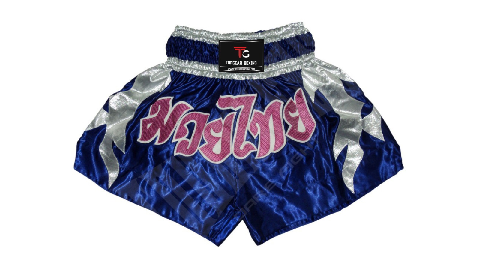 Thai Boxing Short made of 100% polyester satin. 4″ elastic and draw string waistband with patch work.